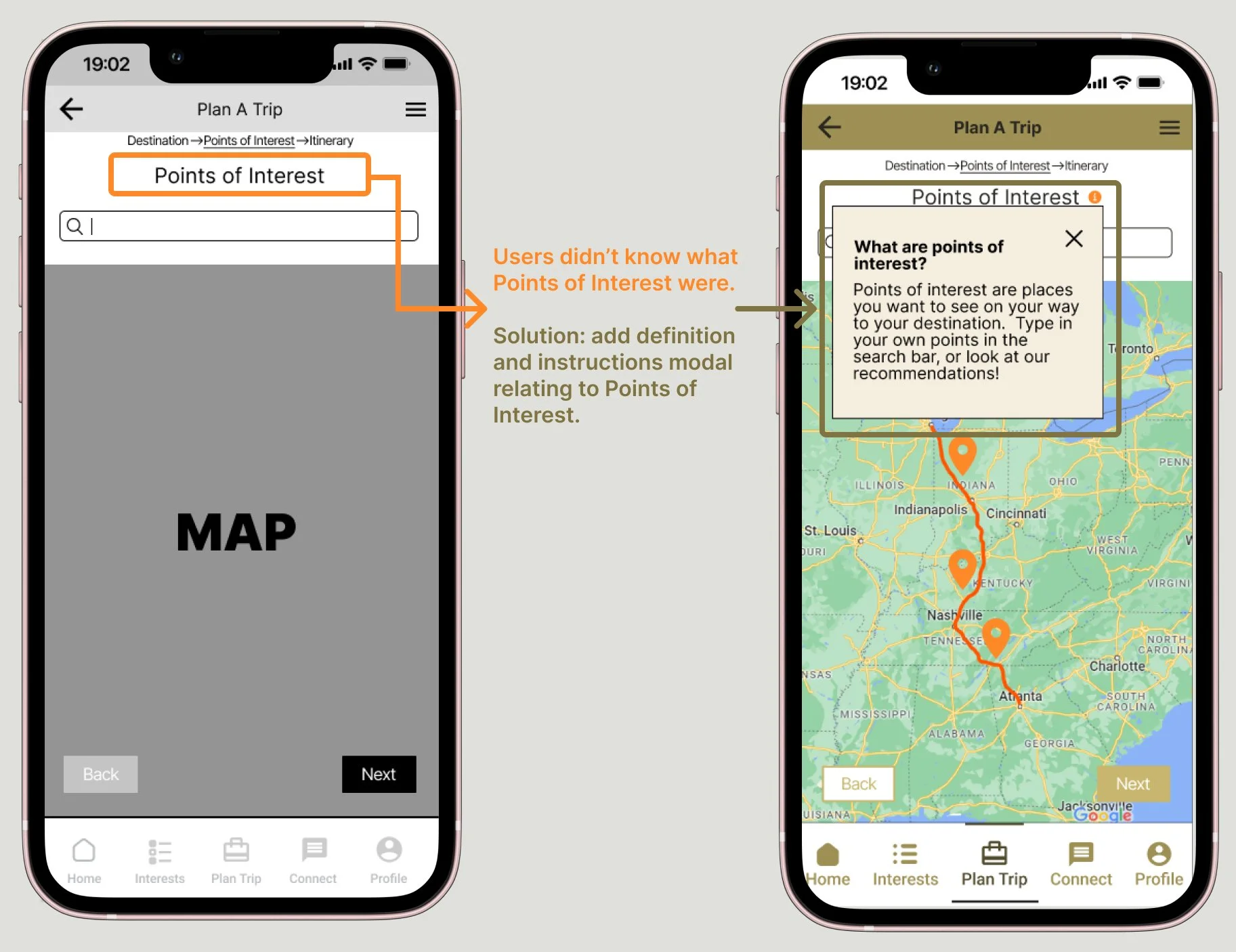 Fig. 4: Solutions for issues found in the Plan a Trip Feature